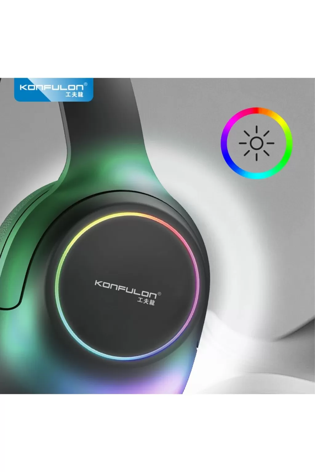 Şık ve modern tasarımıyla, kulaklığınızın etrafında dönen renkli ışık halkası, müzik dinlerken ekstra bir atmosfer yaratır.