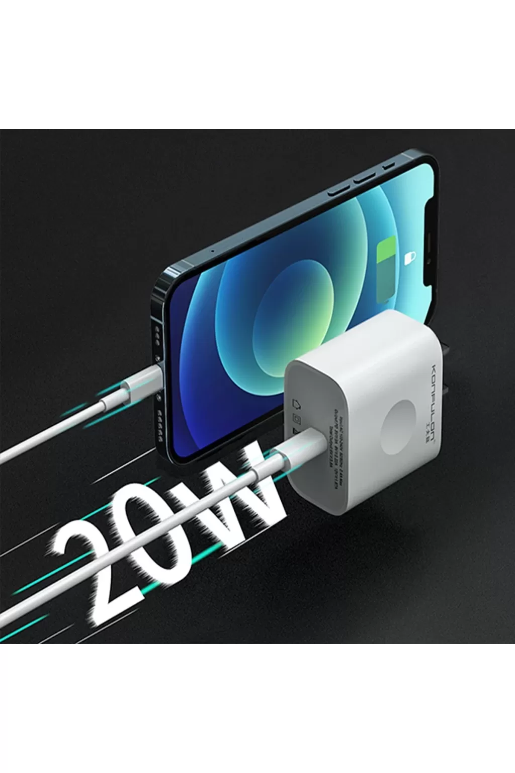 Konfulon C89Q 1 Adet 30W Type-C ve 1 Adet 22.5W USB Çıkışlı Ekstra DL48 1M USB to Lightning Kablolu PD Şarj Cihazı - Beyaz