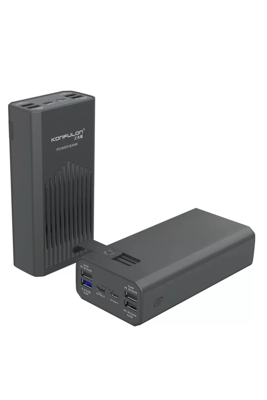 Konfulon P40Q 40000 mAh Powerbank, yüksek hızlı şarj sağlayan ve mobil cihazlarınızı ve hatta bilgisayarınızı en yoğun günlerinizde destekleyen 5 çıkışlı (aynı anda 2 cihazı şarj edebilir) taşınabilir şarj cihazıdır.